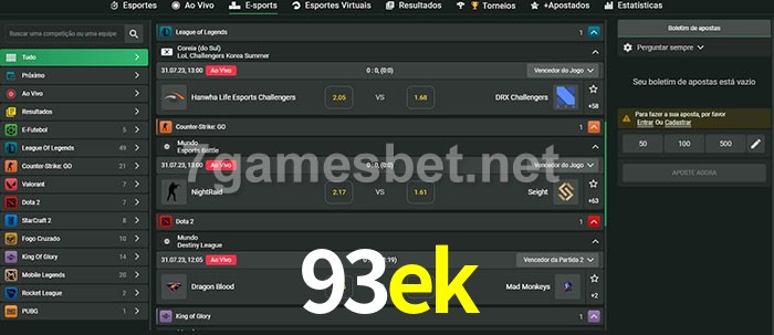 A aposta 93ek oferece aos jogadores a experiência mais conveniente de apostas em eSports!